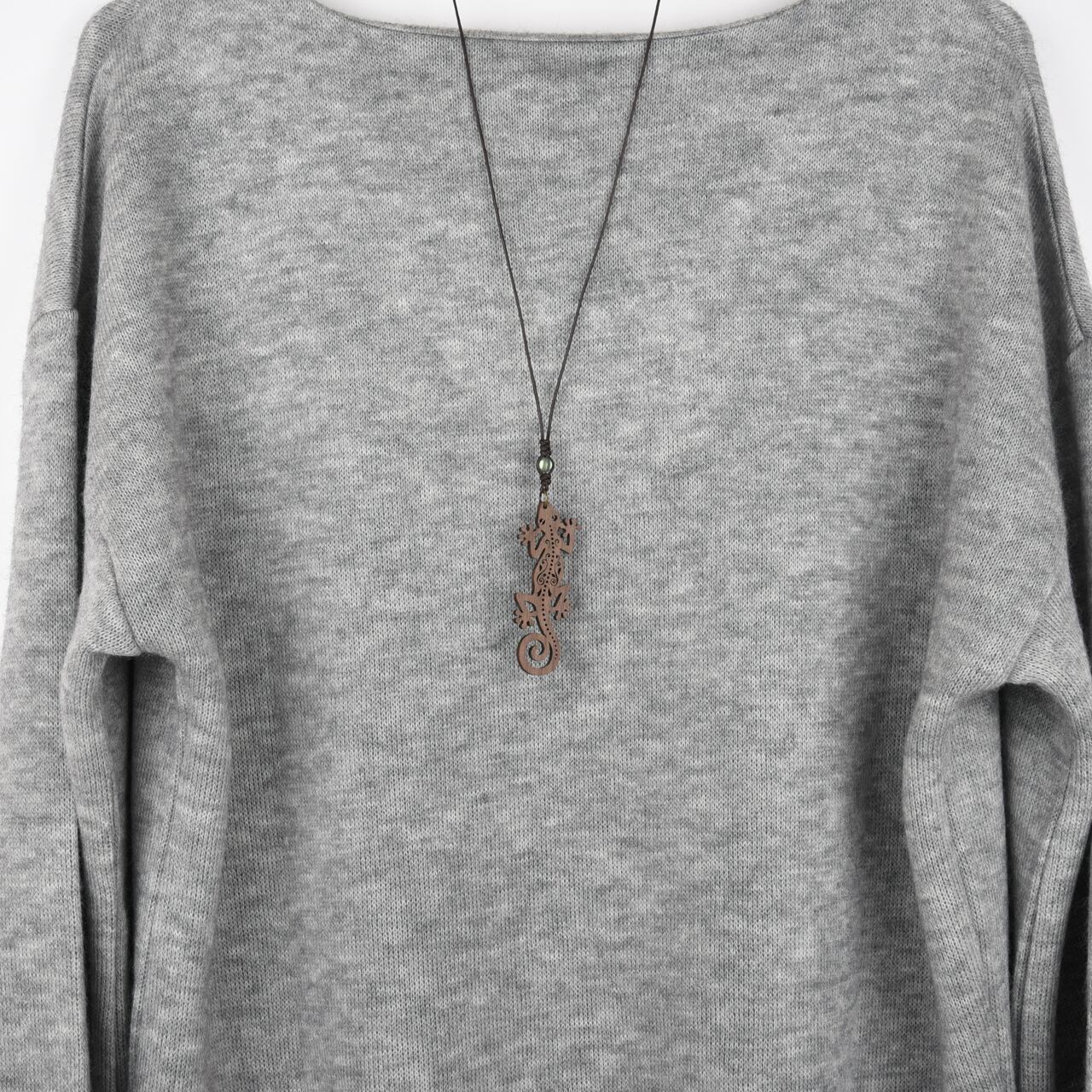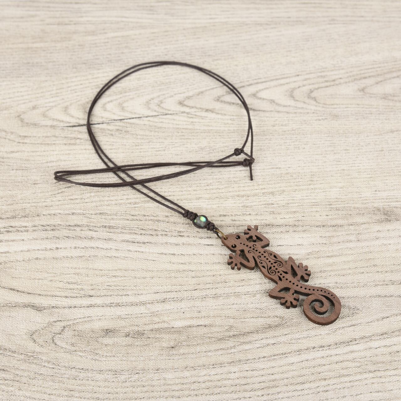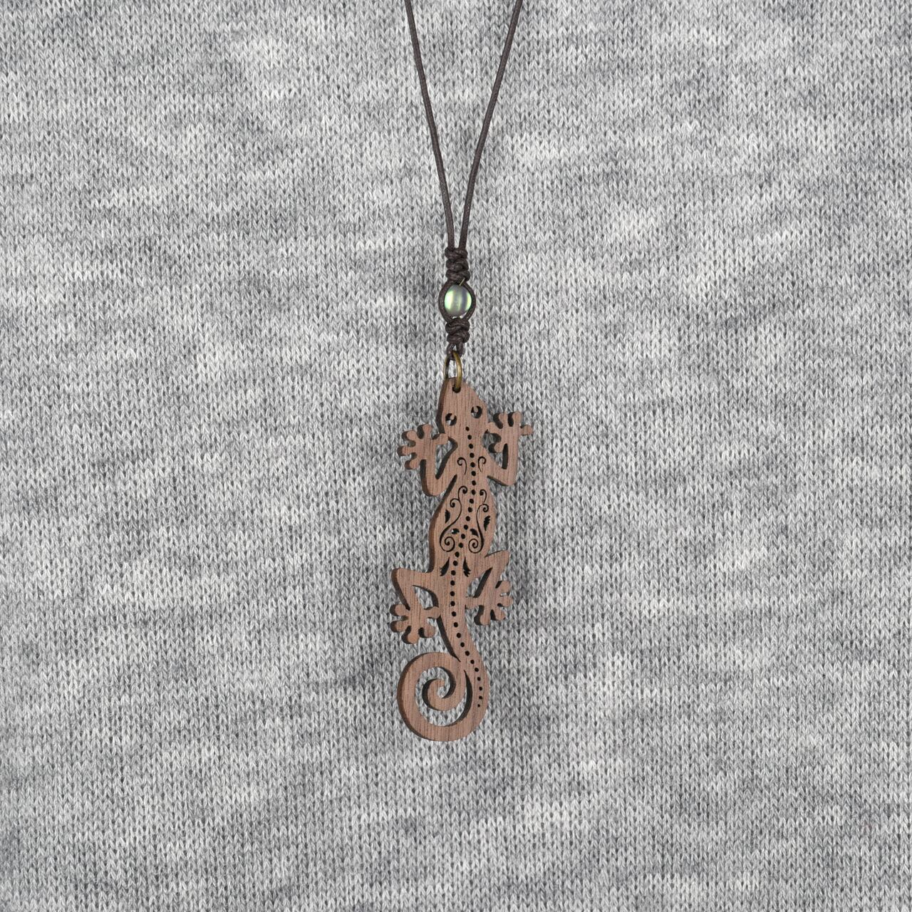月夜の窓ガラスに貼り付くヤモリ(家守)をイメージした、クルミの木(ウォールナット)のネックレス。