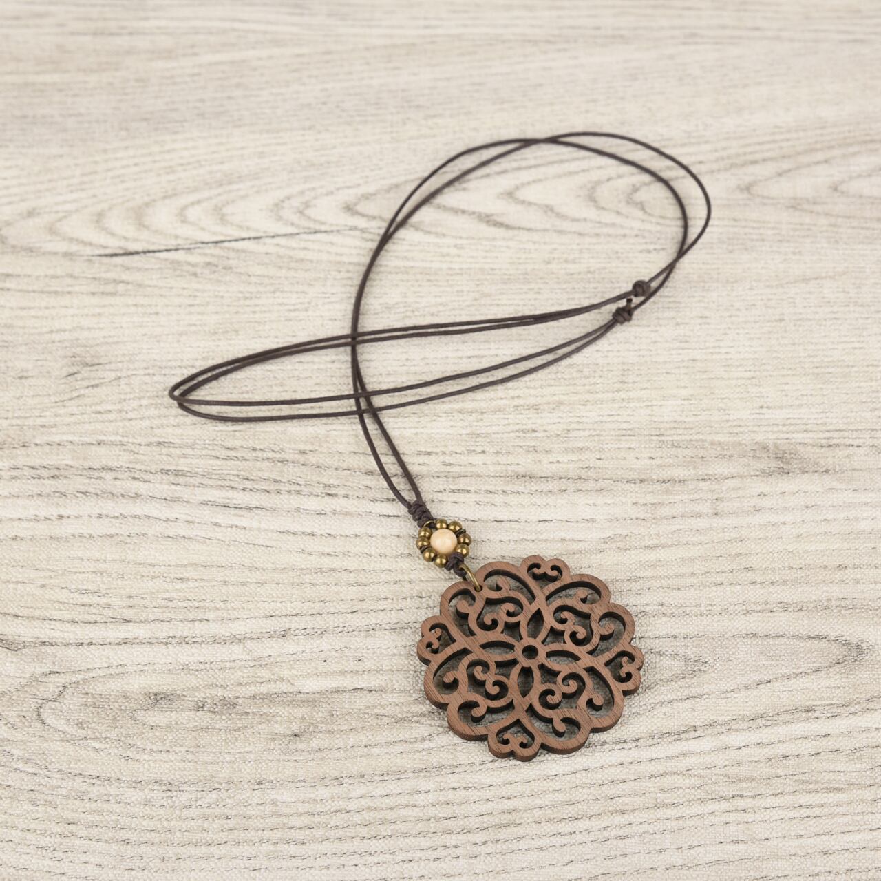 果樹モチーフのウォールナットエレメントに、穏やかな乳白色が美しいリバーストーンの彩りを添えた木製ネックレス。